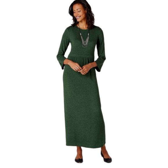 NWT Womens Size Small J. Jill Green Cozy Lantern Sleeve Knit Maxi Dress NEW