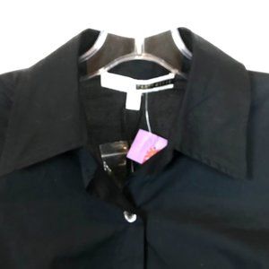 NWT Womens Size XS Tracy Reese Black Stretch Cotton Lace Trim Button Front Shirt