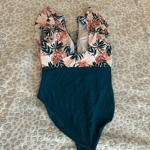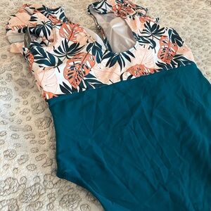 NWT Women’s Size XXL Tropical Print One Piece Swimsuit with ruffle sleeves