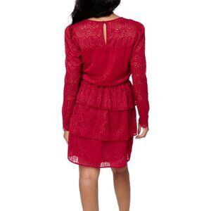 NWT Womens Size XXS Gibson Look Ruby Red Scallop Lace Tiered Mini Dress NEW