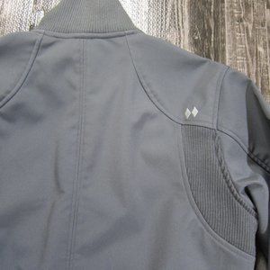 NWT Women's Softshell Bomber Full Zip Jacket with accent zippers, super soft and cozy accent color microboa lining, tall rib collar, btm band, and cuffs. Measurements: