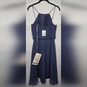 NWT women's Sorella Vita navy cocktail dress with spaghetti straps. Fully lined chiffon gown style 8871. Size 8. Bridesmaid dress.