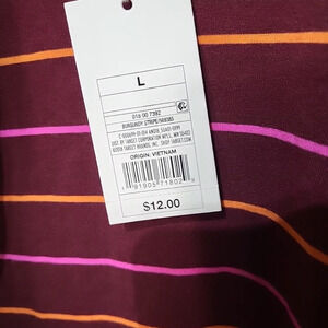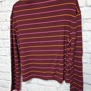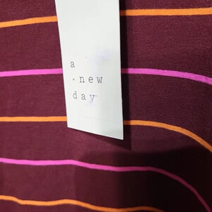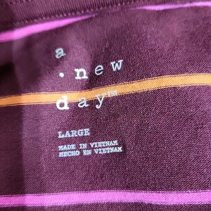 NWT Women's Striped Long Sleeve T-Shirt - A New Day L Burgundy Lightweight