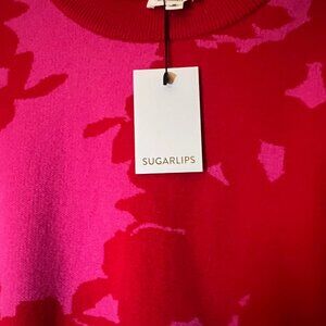 NWT Women's Sugarlips Sweater - Floral Red & Pink - Medium