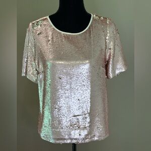 NWT Women’s TOPSHOP Rose gold reversible sequin short sleeve top- Size 6. Excellent condition, all tags attached. See all photos, including measurements. Smoke free home. Fast shipping