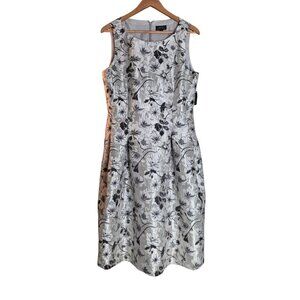 NWT Women's - Tahari ASL Silver Floral Sleeveless Dress, Size 14
