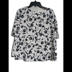 New with tags Women's Tahari short sleeve black on white Floral Tee Blouse Size 1X. 100% cotton. New condition.