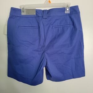 NWT Women's Talbots Blue 7" Chino Shorts Side Buttons Size 8 Cotton