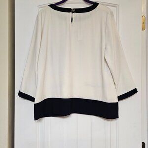 NWT Women's Talbots Career Top 3/4 Sleeve Off White/Navy Blue Trim Size M