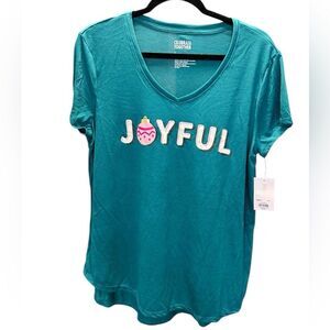 NWT Women’s Teal V Neck Short Sleeve Holiday Graphic T-Shirt “Joyful” - Size L