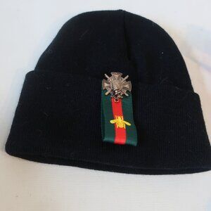 NWT Womens Tina Demel Black Knit Beanie Hat W/"Order Of Merit Of Italian Republic" OS