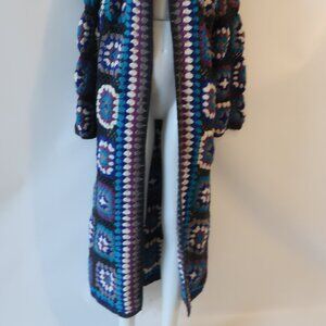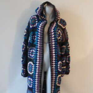 NWT Womens Tina Demel Gray Multicolor Wool Granny Hood Open Cardigan Sweater OS