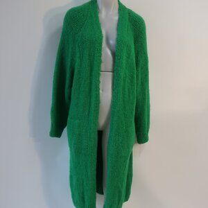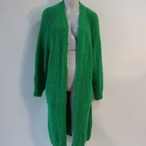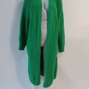 NWT Womens Tina Demel Green Gold Metallic Star Long Open Cardigan Sweater OS