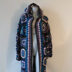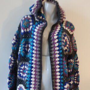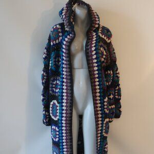 NWT Womens Tina Demel Multicolor 100% Wool Granny Hood Open Cardigan Sweater OS