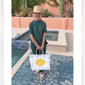 Amazon Brand travel set. Green. Never worn other than for Photoshoot. Great condition. Size chart, fabric content, & care labels in pics. Most items in original plastic packaging. PACKAGING is the NWT TAG. Many Amazon brands have no labels on clothing as you probably know. All items from no smoking home. For reference: I am 5’7, 122 lbs,size 2-4. 34B. Wearing size small.