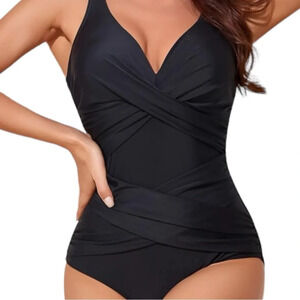 NWT Women’s Tummy Control Summer Swimsuit Adjustable Straps Retro Ruched Vintage