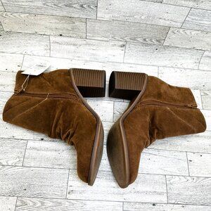 NWT Women's Universal Thread Size 9 Brown Ankle Booties Side Zip 3" Block Heels