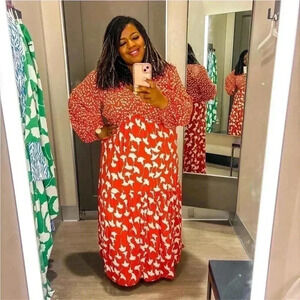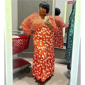 NWT Women's V-Neck Ginkgo Cherry Tomato Maxi Dress - DVF for Target 1X