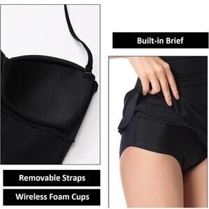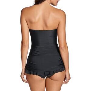 New w tags: Women's Vintage One Piece Strapless Bathing Suit Tummy Control Skirt Retro Swimsuit Swimdress-black-size Women's 4-6