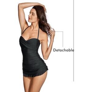 NWT: Women's Vintage 1 Piece Strapless, Tummy Control Skirt Retro Swimdress