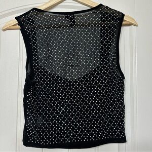 NWT Women’s Windsor Sparkle Bling Sleeveless Black Mesh Pearl Concert Top Large