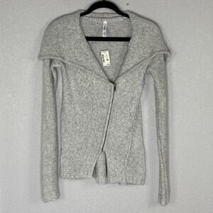 NWT Women's XS Aeropostale Knit Moto Cardigan Sweater Asymmetrical Zip Up Gray