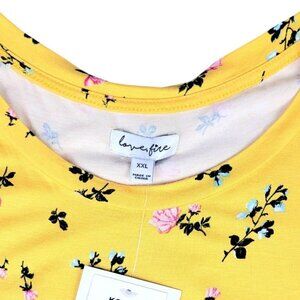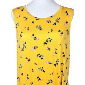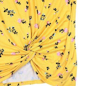 NWT Womens XXL Love Fire Yellow Floral Scoop Neck Scrunch Knot Sleeveless Top