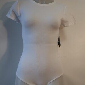 NWT Womens Yummie White Crew Neck Short Sleeve Bodysuit Sz L/XL