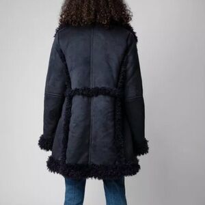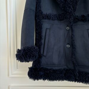 NWT Women’s ZADIG & VOLTAIRE Festif Navy Encre Faux Shearling Penny Coat