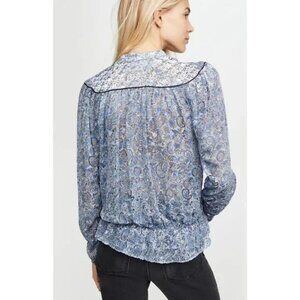 NWT Womens Zadig & Voltaire Blue Gray Silk Blend Tori Velour Devore Blouse Top M