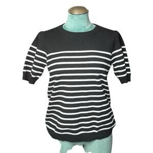 NWT Women's Zesica Crew Neck Pullover Ribbed T Shirt Black Striped Knit Size M