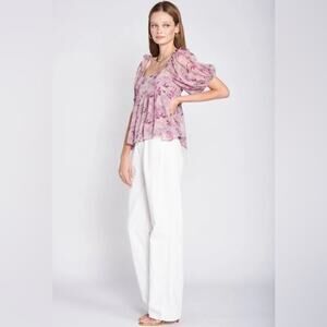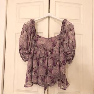 NWT Women's en Saison Luiciate Blouse in Purple Size Large Puff Sleeve Top