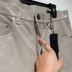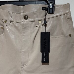 NWT Womens rag & bone Harlow Leather Mid-Rise Straight Pants Nude Stone 31 Fall