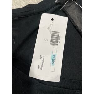 NWT Women's size Small Three Dots Black T-shirt Gisele easy V MSRP $83