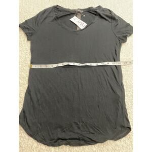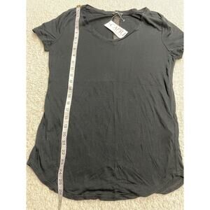 NWT Women's size Small Three Dots Black Tshirt Gisele easy V MSRP $83 RN 94070 Style# NFG1005 Cut# 623259 made in the USA 100% micro modal