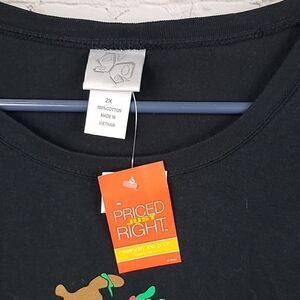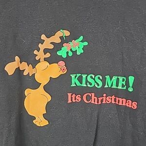 NWT Women's Black KISS ME It's Christmas T-Shirt Holiday Long Sleeve Glitter Top
