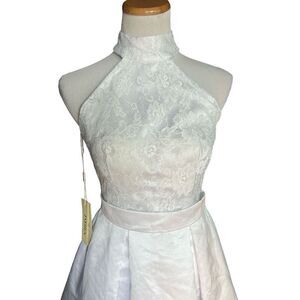 NWT Womens Jaeden Semi Formal Lace Mixed Media Wedding High Neck Dress - Sz S