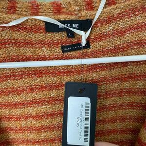 NWT Women’s Miss Me Coral Yellow Striped Fuzzy Knit Cardigan