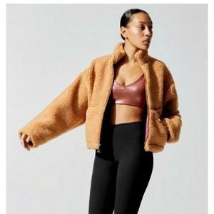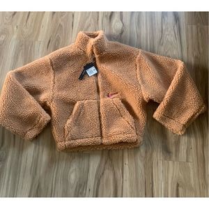 NWT Womens NIKE Sportswear Swoosh Crop Camel Tan Sherpa Fleece Teddy Jacket