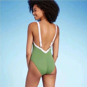 Women'square Neck Wide Binding One Piece Swimsuit - Shade & Shore™ Olive Green XL: Adjustable Straps, High-Leg Cut, Removable Cups