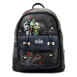 NWT WondaPOP Vegan Leather Disney Mini Backpack VILLIANS Cruella Deville Black