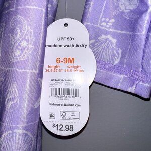 NWT Wonder Nation Baby Zip Rashie Lavender Sky Squares Size 6-9M