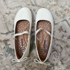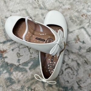 Charming white ballet flats featuring a cute bow detail. Perfect for casual wear.
