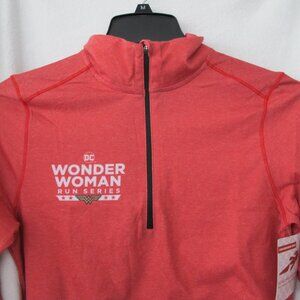 New with tags - Women's Wonder Woman Run Series 1/4 Zip Long Sleeve Performance Top - Size Small. By Headsweats Gear. 80% polyester/20% cotton. Long sleeve with 1/4 zip front in muted red coloring with DC Wonder Woman Run Series print.