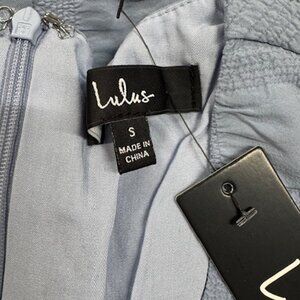 NWT Wonderful Whims Dusty Blue Puff Sleeve Button Front Midi Dress (sz SM)