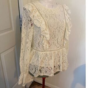 NWT Wonderly Boho Lace Scoop Neck Long Sleeve Women Top Size L