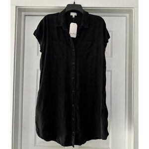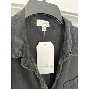 NWT Wonderly Chambray Denim Button Down Shirt Dress Size Medium Washed Black
