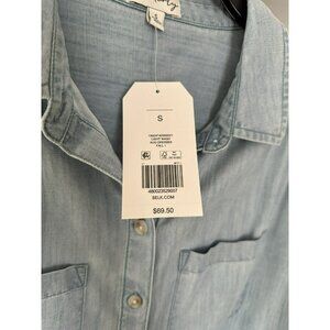 NWT Wonderly Chambray Denim Button Down Shirt Dress Size Small Light Blue