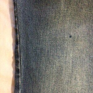 This item is new with tags. There is a small imperfection / irregularity / dye discoloration on the front of 1 leg. Please refer to photos to further evaluate.