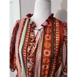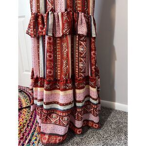 NWT Wonderly Women's Elbow Sleeve Ruffle Tiered Yarn Dyed Dress Multicolor Small